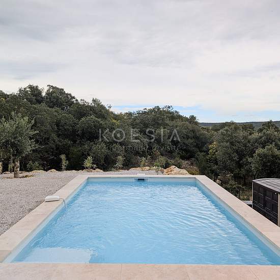 Dans le village de la Boissière, Maison neuve avec piscine et vue dominante sur la garrigue – cadre calme et verdoyant Découvrez cette villa neuve de 111 m², située dans un environnement calme et verdoyant, sur un grand terrain paysager de 1 600 m², sans aucun vis-à-vis. Cette maison non meublée et climatisée (gainable dans toutes les pièces) offre de belles prestations et un cadre de vie confortable. Elle se compose de : Un vaste séjour lumineux ouvrant sur le jardin et la piscine, Une cuisine moderne entièrement équipée, Trois chambres spa...