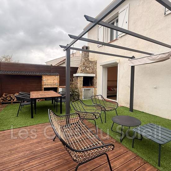 Située dans un environnement calme, découvrez cette belle maison meublée, de type R+1, mitoyenne par le garage offre une surface habitable de 88.91 M². Au RDC, vous découvrirez une entrée avec espace de rangement, un salon/séjour lumineux agrémenté d'une cheminée à insert et d'une climatisation réversible, ouvert sur une cuisine aménagée et équipée. Ce niveau comprend également un WC indépendant ainsi qu'un garage. À l'étage, un dégagement climatisé dessert un dressing, trois chambres, une salle d'eau équipée d'une baignoire et d'une douche,...