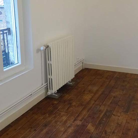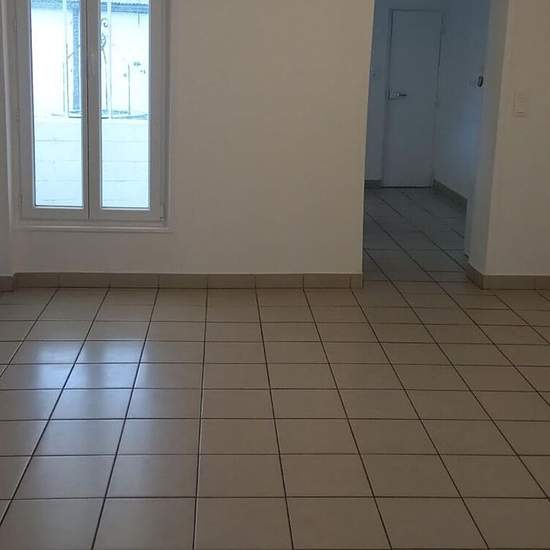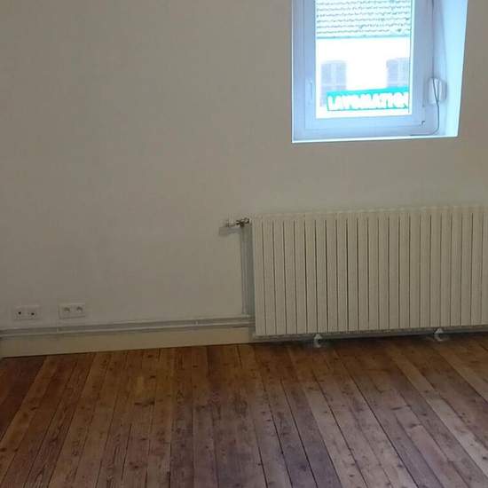 Maison À Louer - LA FÈRE. Maison à louer sur 1 étage comprenant : porche, véranda et cour un salon/séjour avec cuisine aménagée, WC, 3 chambres + 1 bureau une salle d'eau avec WC