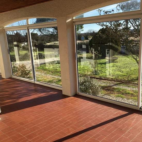 A louer, villa avec garage sur un terrain de 2200m², elle comprend une cuisine séparée avec cellier, un séjour avec climatisation et cheminée, 3 chambres, une salle de bains et des wc separés