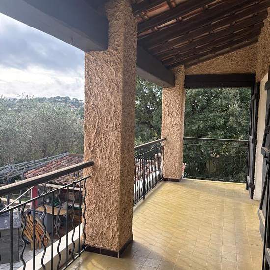 Haut de villa de Type T4 avec un étage situé dans les hauts de chateaubanne. Ce bien se compose de la manière suivante, un grand séjour avec cheminée donnant sur une terrasse, une cuisine indépendante, deux chambres, une salle de bain, un wc. À l'étage, une chambre avec sa salle d'eau et un balcon. Jardin privatif. Disponible immédiatement.