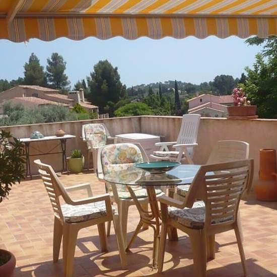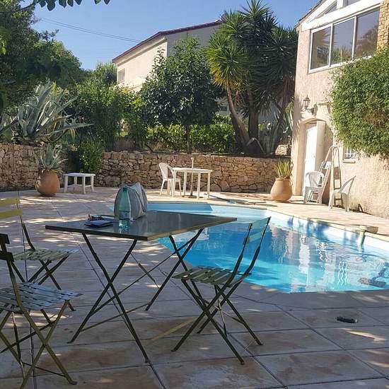 Villa traditionnelle avec jardin clos et piscine. Située entre Toulon et Marseille, à quelques kilomètres de la mer et du village du Beausset, dans un lotissement au calme sur 600 m de terrain clos et arboré, villa traditionnelle en cours de rénovation composée à l'étage (entrée coté nord) : hall, salon séjour de 39m2 avec cheminée insert et climatisation, 2 chambres dont une climatisée, salle d'eau, wc. Cuisine d'été fermée avec four à bois et terrasse. Au rez de jardin (coté sud) : 2 chambres avec salle d'eau et wc, dressing, buanderie. St...