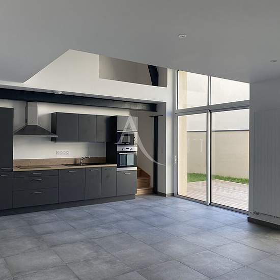 " GARE - PROCHE CENTRE-VILLE " Au calme, proche toutes commodités, belle maison type loft d'environ 111m2. Vous y découvrirez une grande pièce de vie avec une cuisine aménagée et équipée ouverte, vous donnant accès à la terrasse. Dans le prolongement, vous découvrirez une chambre de plain-pied avec une salle d'eau privative, une buanderie et un WC séparés. A l'étage, le palier dessert 2 chambres, une salle de bains avec douche, un WC séparés. Possibilité de stationner 1 voiture devant la maison. Libre début avril ! Ref : LOC4274 DPE : C Cont...