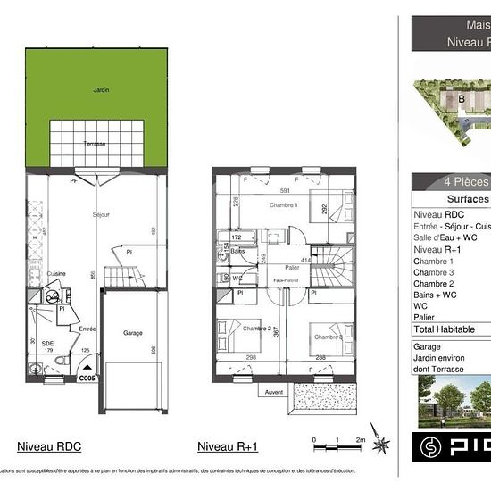 PAS DE FRAIS D'AGENCE. Situé à Léognan, dans une nouvelle résidence situé proche du centre de convalescence CHATEAUNEUF, Maison de type T4 en duplex, de 80m2 comprenant au rez-de-chaussée, une entrée avec placard, un séjour ouvert sur la cuisine (uniquement évier et meuble sous-évier), une salle d'eau avec wc à l'intérieur et un escalier avec placard de rangement sous l'escalier. Au 1er étage, un pallier donnant accès aux trois chambres avec chacune un placard, une salle de bain, un wc séparé. Jardin de 31m2 dont 8m2 de terrasse et un garage...