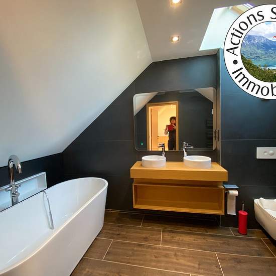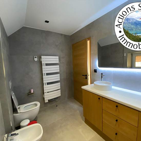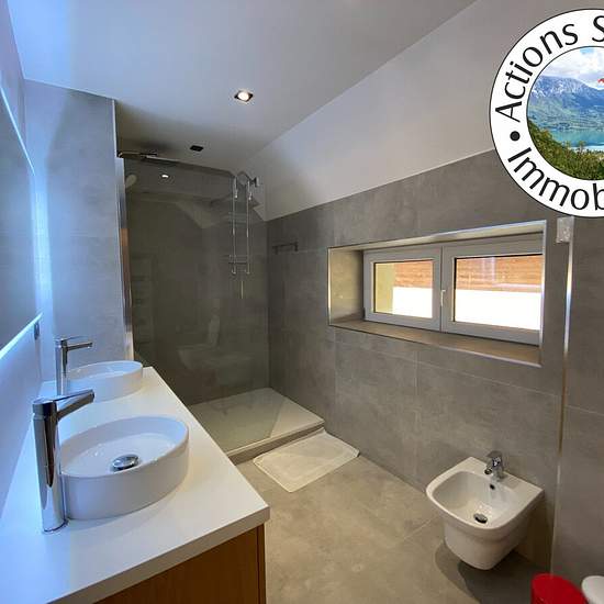 Au calme, dans un ancien corps de ferme mitoyen sans gêne et réhabilité à neuf 2019 , une maison MEUBLEE de très bon standing, de type T4 de 132 m² env. Terrasse et jardin d'environ 400 m². Elle comprend en rez : un vaste séjour d'env. 57 m²avec cuisine ouverte aménagée et équipée , 1 WC coin buanderie ; Au 1er : 2 chambres, une grande salle de douche avec douche à l'italienne, un WC ; Au 3ème étage : une suite parentale avec salle de bains privative avec baignoire et WC. 2 emplacements de parking - Chauffage par pompe à chaleur, au sol en r...