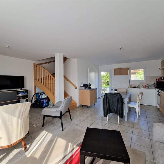 Aux Sorinières, à 7 minutes à pieds de l'arrêt de bus La Haute Lande du C4; Une maison à étage de 77,25m² de 2018 comprenant au rez-de-chaussée : un séjour-salon avec placard d'entrée et une cuisine aménagée et équipée (four, plaques de cuisson, hotte) et une salle d'eau avec WC. A l'étage, vous trouverez trois chambres et une salle de bains avec WC. Jardin et carport. Disponible dès à présent. Honoraires de 618 € TTC à la charge du locataire comprenant 232 € TTC pour l'état des lieux. Loyer de base 1012 €/mois. Provision sur charges 22 €/mo...