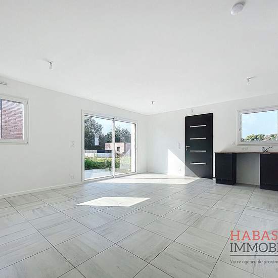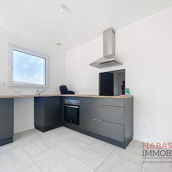 Référence G135 - Dans un lotissement, en impasse, venez découvrir cette maison de 2024 de 65.20 m² . De plain pied, elle se compose d'une belle pièce de vie avec cuisine ouverte, aménagée et équipée (four, plaques de cuisson, hotte), 2 chambres avec placard, 1 salle d'eau, Wc séparé et cellier. Vous pourrez profiter de l'exposition Sud Ouest sur la terrasse. Disponible rapidement.