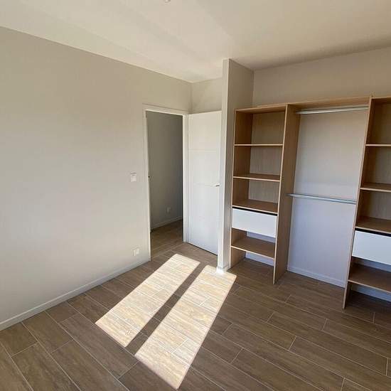 Maison À Louer. Située dans une lotissement calme, maison neuve jumelée de 77 m² de plain pied comprenant une cuisine ouverte sur le séjour, 3 chambres avec dressing , une salle d'eau, un wc indépendant et un cellier. La maison dispose d'une terrasse de 15m² et d'un jardin clôturé de 280m² avec un cabanon. Deux places de stationnement.
