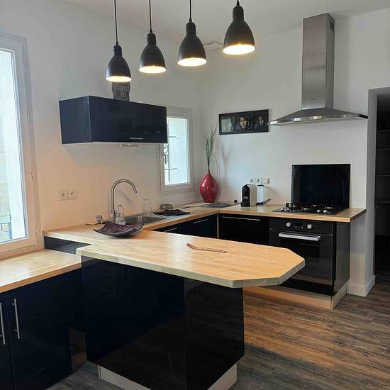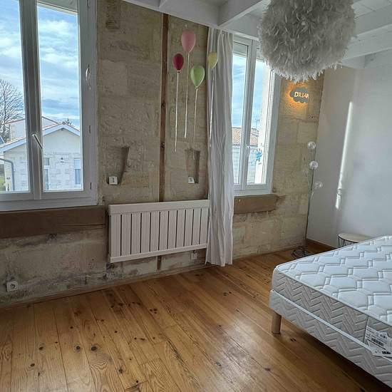 Jolie maison de ville en plein centre de la commune de Margaux, proche des commerces de proximité, écoles, gare... Cette maison individuelle, pleine de charme est proposée à la location en meublée. Excellent état et très bien décoré, cette maison dispose, au rez de chaussée, d'un vaste séjour avec un poële à granule, d'une cuisine contemporaine ouverte meublée et équipée, d'un wc séparé et d'une suite parentale ( buanderie dressing et salle d'eau). A l'étage, vous trouverez un pallier généreux avec un grand placard, pour y installer un burea...