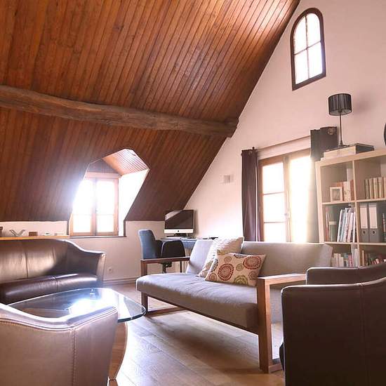 Good spacious 4-bedroom private house for long-term rent in the commune of Marly-le-Roi near Paris. This is a comfortable apartment in one of the oldest residential buildings of the town - a wonderful housing option for a large close-knit family away from the bustle of Paris. Surface - 160 square meters of living area; three levels; recent renovations (outside and inside); fireplace; natural wood in interior decoration; number of tenants - up to 8 persons; fenced patio; mansard; gas heating; cellar. The house has a spacious living room, a ...