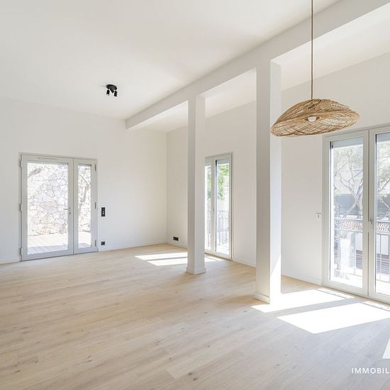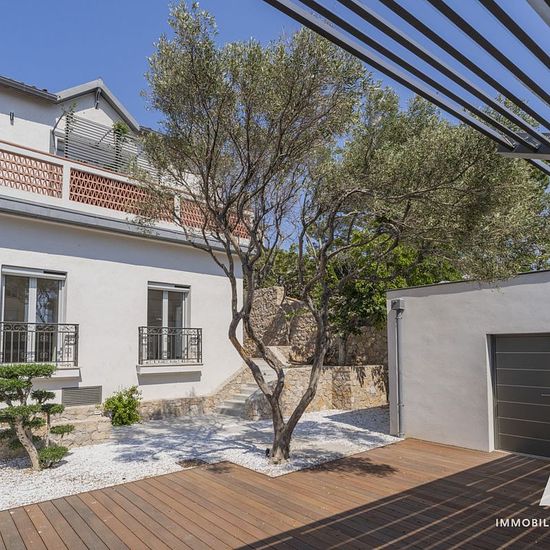 A propos de ce bien Endoume-Malmousque : A+ Immobilier-Patrimoine vous propose à la location, une magnifique maison de ville rénovée avec des matériaux de qualité, un emplacement rare, au calme, à deux pas des commerces et de la mer. Nous découvrons la maison par son extérieur d'environ 120m2 composé de terrasses et jardin aux murs en pierres sèches. La maison principale s'organise en un type 3 avec un salon ouvert sur les exterieurs de 33m2, cuisine aménagée et semi-équipée, deux chambres avec placards, salle d'eau et toilettes indépendant...