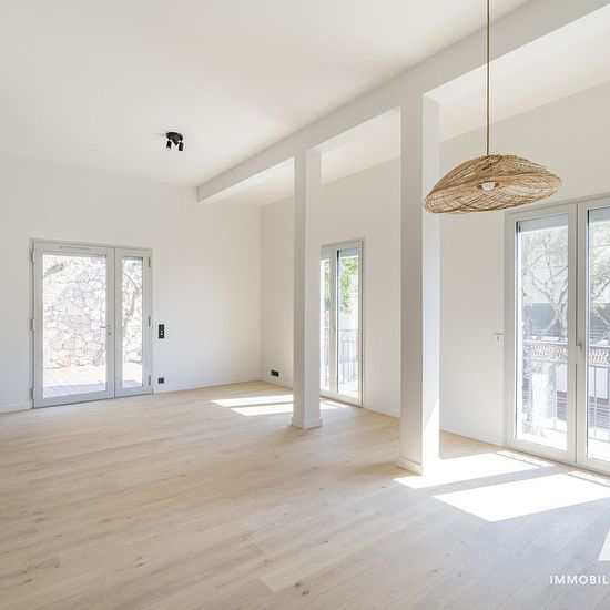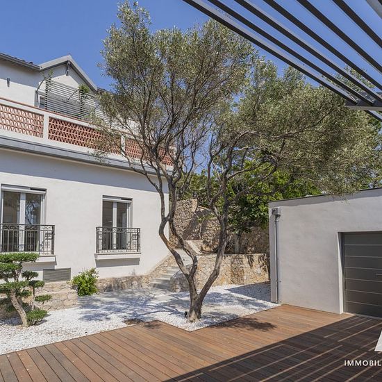 Endoume-Malmousque : A+ Immobilier-Patrimoine vous propose à la location, une magnifique maison de ville rénovée avec des matériaux de qualité, un emplacement rare, au calme, à deux pas des commerces et de la mer. Nous découvrons la maison par son extérieur d'environ 120m2 composé de terrasses et jardin aux murs en pierres sèches. La maison principale s'organise en un type 3 avec un salon ouvert sur les exterieurs de 33m2, cuisine aménagée et semi-équipée, deux chambres avec placards, salle d'eau et toilettes indépendants. En complément, un ...