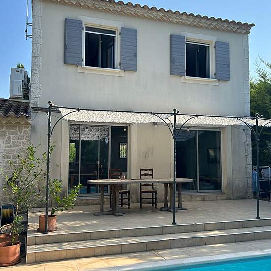 My Home Connexion vous propose à la location cette charmante villa avec piscine, idéalement située au coeur du village de Maussane-les-Alpilles. Dès l'entrée, vous trouverez le salon ouvert sur la terrasse et la piscine, parfait pour profiter des beaux jours . La cuisine moderne, ouverte sur l'espace de vie, offre un cadre chaleureux et pratique. Le rez-de-chaussée comprend également un WC invité, un placard d'entrée, une buanderie ainsi qu'un garage. À l'étage, l'espace nuit dispose de trois chambres confortables et d'une salle de bains ave...