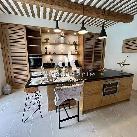 Situé au centre du village de Maussane, à quelques pas des restaurants et des commerces, le mazet Jasmin est un véritable havre de paix à l’abri des regards et des nuisances sonores. Le calme est absolu. D’une surface de 100m2, il a été intégralement repensé par un architecte d’intérieur avec des lignes sobres, épurées et contemporaines. Un premier portail électrique vous offre deux emplacements sécurisés pour vos véhicules et un second portail donne accès au mazet. Une belle terrasse exposée plein sud avec une table 4 personnes, une piscine...
