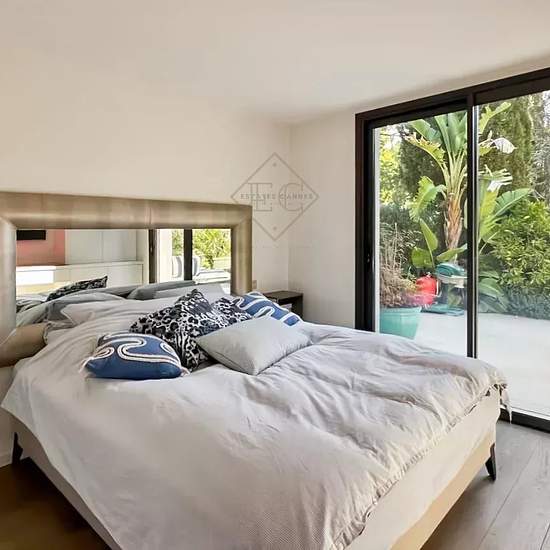 Nichée au cœur de la verdure, à seulement quelques minutes de Cannes, cette maison moderne de plain-pied est une véritable invitation à la douceur de vivre. Entièrement rénovée avec goût, elle allie lignes contemporaines, lumière naturelle et confort absolu. Les espaces de vie, ouverts et chaleureux, s’articulent autour d’un salon élégant et d’une cuisine parfaitement équipée, s’ouvrant directement sur le jardin et la piscine. À l’extérieur, la terrasse exposée plein sud devient un lieu privilégié pour partager des repas, se détendre sur les...