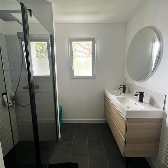 Maison récente 4 pièces avec garage et jardin – Mouguerre, proche Bayonne Description : À louer à Mouguerre, dans un environnement calme à proximité du bourg, maison individuelle construite en 2021. Le bien se situe à environ 10 minutes de Bayonne et à proximité des écoles et des commerces. Location meublée disponible immédiatement. La maison se compose d’un séjour lumineux avec cuisine ouverte entièrement équipée, de trois chambres, d’une salle d’eau ainsi que de deux WC séparés. Un garage attenant complète le bien. Le tout est implanté sur...