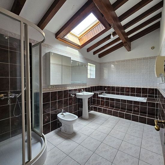 De beaux volumes pour cette maison avec ascenseur, lumineuse et au calme tout en étant proche du bourg de Mouguerre (secteur croix de Mouguerre). Au rez-de-chaussée, un dégagement dessert un vaste séjour / salle à manger avec cheminée à insert, une cuisine aménagée et équipée (four, plaque, hotte neufs), deux chambres, une salle de bains, des WC séparés et une véranda. A l'étage, un bureau, deux chambres, une salle de bains, des WC séparés et des combles. A l'entresol / rez-de-jardin, un espace bricolage / garage / atelier... avec évier, sal...
