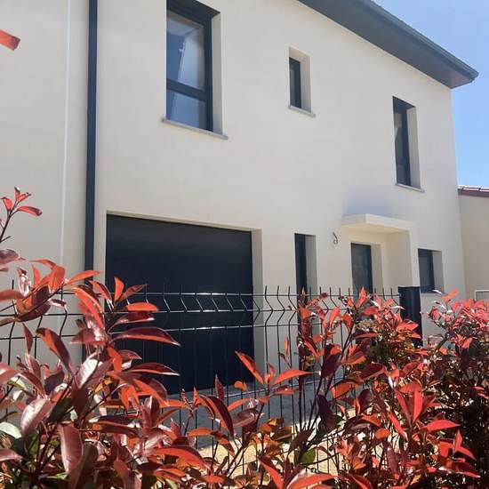 Narbonne les Pléiades : Villa neuve construction 2023 T4 de 105,28m² habitable, composée en RDC d'une cuisine équipée avec électroménager donnant sur espace séjour/ salle à manger de 44,41m² , buanderie, WC et garage de 13,99m² A l'étage 3 belles chambres de 13,63m², 14,13m² et 17,09m² et une salle d'eau Sur 150m² de terrain clos A étrenner produit rare !