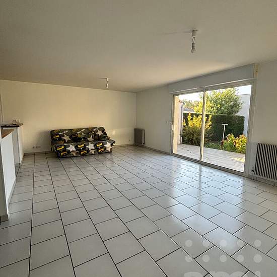 Pavillon Plain Pied T4 Entrée, séjour - salon avec cuisine ouverte non aménagée (43 m2), 3 chambres (PL, lino), salle de bains (baignoire, douche et double vasques) et WC. GARAGE - CELLIER Libre à partir du 1/01/2026