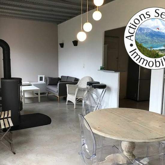 Novalaise - vue lac- bail meuble residence secondaire duree ferme jusqu'au 09-06-2026- maison meublée et équipée de 76 m² en très bon état - séjour, cuisine entièrement équipée ouverte, 2 chambres + bureau ou ch d'appoint, 2 salles d'eau, 3 wc, dressing. Cave, petit garage, abri cycles, 2 place de parking privées et cabanon. Terrasse semi couverte, terrain entretenu avec verger 1740 m² - double vitrage. Chauffage électrique et poêle à bois. Dpe e - bien visitable sur rv pour un début de location au 11 / 10 / 2025. Frais d'actes 690.66€ttc. H...