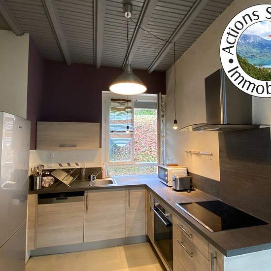 NOVALAISE - VUE LAC- BAIL MEUBLE RESIDENCE SECONDAIRE DUREE FERME JUSQU'AU 28-06-2026- Maison meublée et équipée de 76 m² en très bon état - Séjour, cuisine entièrement équipée ouverte, 2 chambres + bureau ou ch d'appoint, 2 salles d'eau, 3 WC, dressing. Cave, Petit Garage, abri cycles, 2 place de parking privées et cabanon. Terrasse semi couverte, terrain entretenu avec verger 1740m² - Double vitrage . Chauffage électrique et poêle à bois. DPE E - Bien visitable sur rv . Frais d'actes 690.66€TTC. Honoraires de 691 € TTC à la charge du locat...