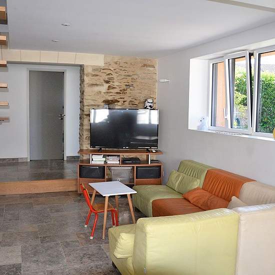 À la varenne, commune de bord de loire à 15mn du périphérique nantais et d'ancenis, nous vous proposons à la location cette maison entièrement rénovée de 93 m² habitable (125 m² surface utile), située dans le bourg à proximité des commerces, services, écoles (accessibles à pied). Elle dispose d'une entrée, d'une confortable pièce de vie séjour / salon / salle à manger avec cuisine ouverte (aménagée et équipée : plaque de cuisson à induction, hotte, four, lave-vaiselle, réfrigérateur / compartiment congélateur), d'un espace bureau, d'une sall...