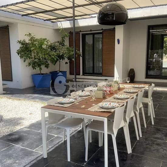 Paradou - grande villa comtemporaine venez découvrir à partir du 31 mars 2026 cette magnifique villa disponible en location meublée ou non à votre convenance. Cette villa est composée d'une cuisine ouverte sur le séjour d'environ 100 m², de 2 chambres en rez-de-chaussée avec un bureau dont une avec suite parentale. À l'étage une chambre avec douche, baignoire et dressing. Jardin clos d'environ 5 000 m² avec sa piscine chauffée de 12 x 6. Villa disponible dès le 31 mars 2026. Loyer 5300 + 500euros de charges pour l'entretien des espaces verts...