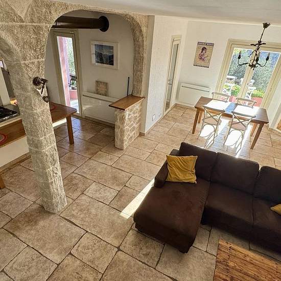 A 2 minutes du centre du village de Peille , belle villa meublée, avec piscine, sur 2 niveaux, composée d'une très agréable pièce à vivre avec espace cuisine, d'un salon avec poêle à granules et coin salle à manger, de deux chambres avec placards, un grand dressing, une salle de bains, un WC invité et un bureau. A l'étage, vous trouverez une chambre avec salle de bains en suite, ainsi qu'un deuxième salon avec coin cuisine. Cet espace pouvant devenir un appartement indépendant. Coté jardin : une belle terrasse avec cuisine d'été, une belle p...