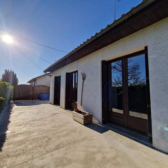 Aux portes d'Auch, maison de plain pied Type 4 d'environ 85m² habitables. Entrée, salon avec insert ouvrant sur grande terrasse, cuisine semi-équipée, 2 chambres, un bureau, un cellier/buanderie, une salle d'eau, un wc indépendant. Un petit jardin clôturé avec abri vpiture.