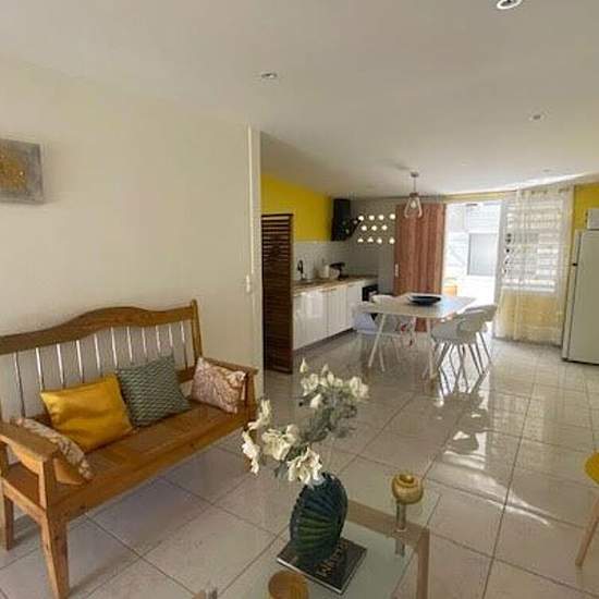 Maison À Louer. Exclusivité Orpi, maison mitoyenne d'un côté située proche des commodités, école, collège et lycée de PETIT-BOURG. Maison entièrement meublée et rénovée composée d'une pièce de vie salon/séjour, une cuisine aménagée et équipée, deux chambres climatisées avec placards, une salle d'eau et un wc indépendant. Elle propose également une dépendance composée d'une chambre parentale climatisée avec placard et sa salle d'eau avec wc. La partie principale rejoint la dépendance par une terrasse couverte. Vous profiterez d'un autre espac...