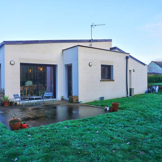 A louer à Plouha, une maison non meublée, à faible consommation énergétique construite en 2017, de plain pied sur un terrain clos de 498m2 au fond d'une voie privée dans un quartier calme à 3 km de la plage du Palus et à 600m du centre ville. La maison comporte une entrée avec placards, une grande pièce de vie, une cuisine aménagée et semie équipée, une arrière cuisine qui permet d'accéder au garage attenant. La partie nuit est séparée par une porte qui s'ouvre sur un dégagement menant aux 3 chambres avec placards, à la salle de bain et aux ...