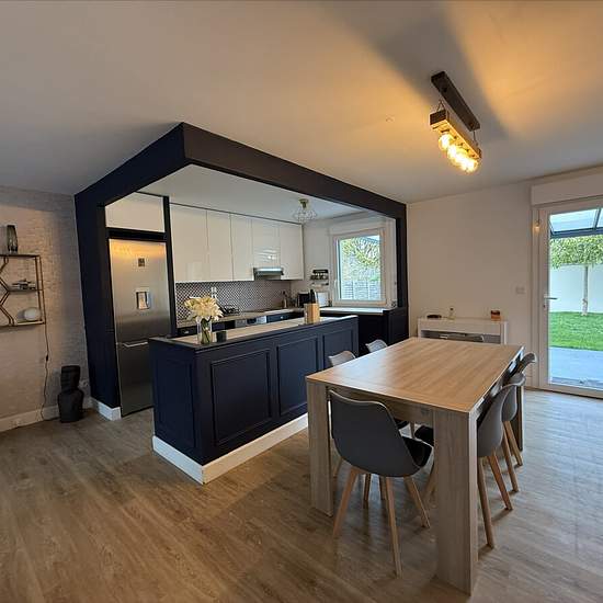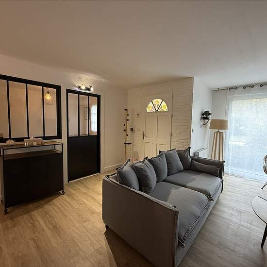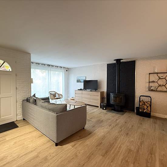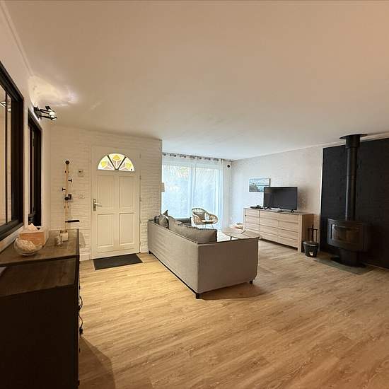 A 10 minutes de Fontainebleau. Dans un village au coeur de la forêt domaniale de Fontainebleau, Maison individuelle de plain-pied. Elle se compose d'une pièce de vie lumineuse avec poêle à bois, une cuisine aménagée et équipée ouverte sur un espace repas convivial, un bureau. Très fonctionnelle avec sa partie nuit comprennant trois chambres, dont une avec salle d'eau privative, une salle de bains et un WC séparé avec lave-mains. À l'extérieur, vous apprécierez une terrasse ensoleillée donnant sur un jardin clos, parfait pour les moments de d...