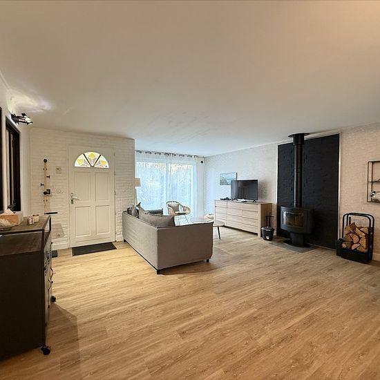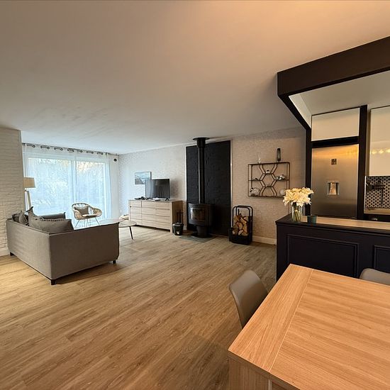 A 10 minutes de Fontainebleau. Dans un village au coeur de la forêt domaniale de Fontainebleau, Maison individuelle de plain-pied. Elle se compose d'une pièce de vie lumineuse avec poêle à bois, une cuisine aménagée et équipée ouverte sur un espace repas convivial, un bureau. Très fonctionnelle avec sa partie nuit comprennant trois chambres, dont une avec salle d'eau privative, une salle de bains et un WC séparé avec lave-mains. À l'extérieur, vous apprécierez une terrasse ensoleillée donnant sur un jardin clos, parfait pour les moments de d...