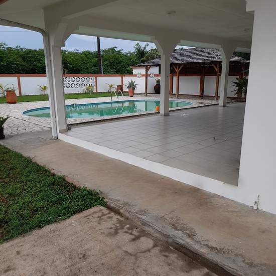 Une GRANDE MAISON T4 AVEC PISICNE ET JARDIN D'UNE SURFACE DE 1 200 m2 comprenant : une chambre parentale climatisée avec placards avec salle d'eau, deux chambres climatisées avec placards, une salle de bain indépendante, un WC indépendant, une buanderie, un cellier, une cuisine améangée et équipée ouvert sur un grand salon, une grande terrrasse spacieuse et un abri voiture, une piscine au sel, un kiosque attenant. Très bien située entre le secteur de Morne Coco et la Mairie de Rémire Monjoly, proche de toutes les commodités. LOYER: 2 675EUR ...
