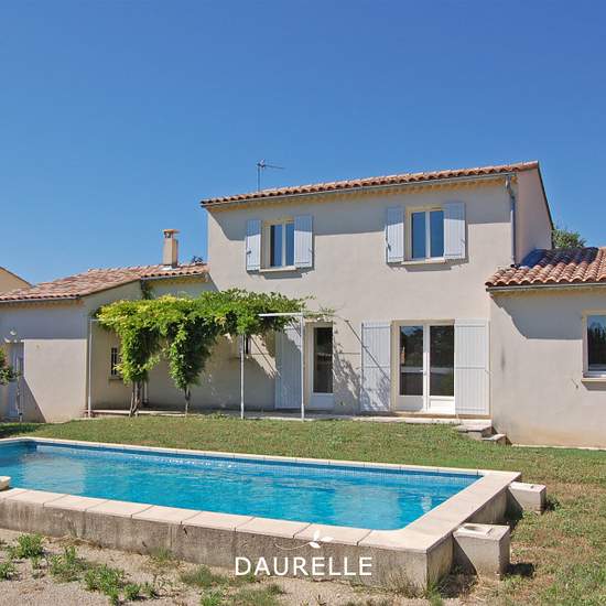 Disponible le 03 février 2026. À proximité immédiate du centre-ville de Rognonas, au calme d'un lotissement agréable, venez découvrir cette villa d'environ 123 m2 habitables, offrant un cadre de vie confortable et convivial. Édifiée en R+1, elle se compose au rez-de-chaussée d'un double séjour lumineux de 38,5 m2 avec cheminée et larges ouvertures sur l'extérieur, d'une cuisine aménagée spacieuse avec buanderie attenante, d'un WC indépendant ainsi que d'une suite parentale avec salle d'eau privative. À l'étage, l'espace nuit propose trois ch...