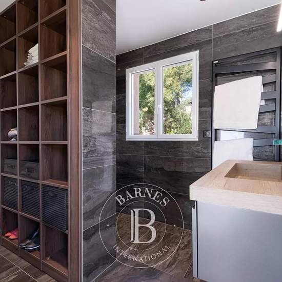 * Villa Azur * Située dans un environnement exceptionnel, propriété pied dans l'eau de 140 m². Au rez-de-jardin, une cuisine équipée avec cellier, une pièce de vie lumineuse ouvert sur une large terrasse, une chambre de maitre avec sa salle de douche, son dressing. Une seconde chambre avec salle de douche. À l'étage, une chambre supplémentaire avec deux lits simples s'ouvre sur une terrasse surplombant la mer. En extérieur, un jardin de 1000 m², un pool house aménagé doté d'une salle de douche, et une piscine, créant un havre de paix. Equipe...