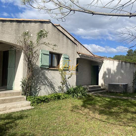 Au calme dans un impasse jolie Villa de plain pied de 101m2 type 4 sur un magnifique terrain d'environ 1500m2 comprenant un hall d'entrée, un grand séjour lumineux avec climatisation, une cuisine indépendante aménagée et semi équipée (hotte et plaques de cuisson), 3 chambres avec placards, wc indépendant, salle de bains. Un grand garage Loyer 1300 EUR HC - Libre fin mai Revenus mensuels nets minimum demandés (assurance garantie de loyers impayés) 3900 EUR