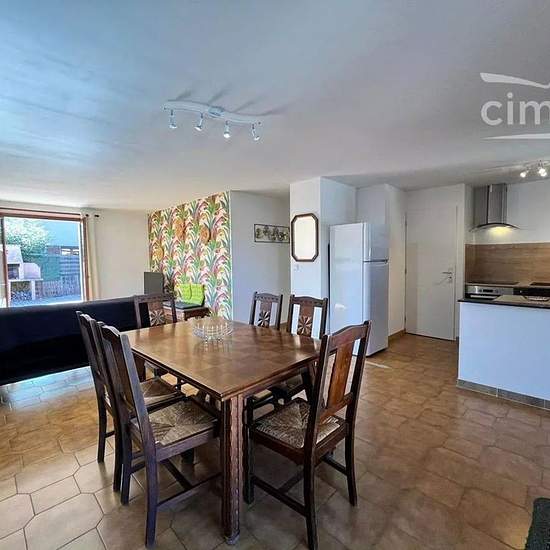 LOCATION SAISONNIERE :Venez profiter de votre séjour dans cette grande villa accompagnée d'une terrasse de 78m² parfaite pour profiter des beaux jours (barbecue, table, chaises, parasol). Pouvant accueillir jusqu'à 7 personnes, cette maison se compose comme suit: un grand séjour d'environ 30m² avec canapé convertible (120) , une cuisine entièrement équipée avec une cafetière senseo/filtre, 3 chambres avec lits doubles (140), une salle d'eau ainsi qu'un WC séparé. Ménage et draps inclus (possibilité de louer les kits de serviettes à l'agence)...