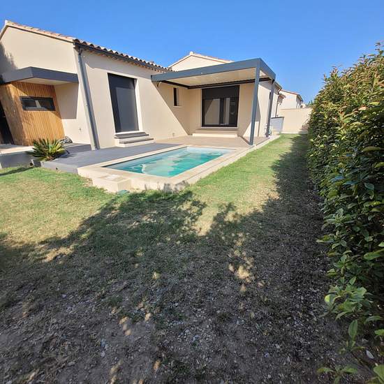 Juristimmo Camaret vous propose à la location exclusivement pour une durée déterminée, jusqu'au 1er juillet 2027, cette maison de plain-pied d'environ 96 m2, entièrement meublée, située dans un lotissement calme et recherché de Sérignan-du-Comtat. Cette condition de durée est impérative et constitue une spécificité essentielle de la location. À proximité immédiate de toutes les commodités, la maison offre un cadre de vie confortable et fonctionnel. Elle se compose d'un bel espace de vie lumineux de 45 m2 comprenant un séjour et une cuisine o...