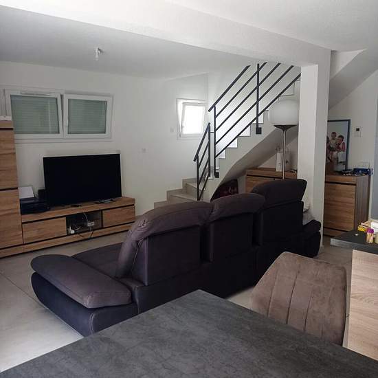 Maison récente de 98 m² avec avec jardin entièrement clos et arboré. Elle dispose au rez de chaussée, d'une entrée, d'un cellier, d'un WC et d'une belle cuisine équipée ouverte sur un lumoneux séjour. Au 1er étage se trouvent 3 chambres et une salle de bain équipée d'un double vasque, d'une douche à l'italienne et d'une baignoire. Garage accolé. Vous serez séduits par les belles prestations qu'offre cette maison contemporaine. Disponible le 1er mars 2026 Location en meublée. Loyer : 1200 euros Charges : 40 euros (taxe d'ordures ménagères, en...
