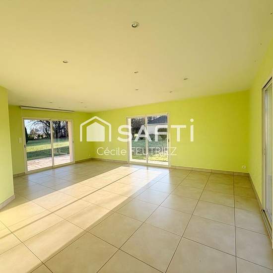 Dans un environnement extrêmement calme, tout en restant proche des axes principaux, cette maison de plain-pied de 121 m² offre de beaux volumes et un cadre de vie agréable. • Séjour spacieux et très lumineux • Cuisine séparée avec grande arrière-cuisine • 3 chambres aux beaux volumes avec placards / dressings • Salle de bain avec douche et baignoire • Entrée avec placard • Double garage de plus de 50 m² • Terrain plat non clôturé d'environ 7 500 m² • Chauffage fioul, maison confortable et bien entretenue Loyer : 1 000 ¤ + 75 ¤ de charges (E...