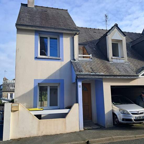 A louer en centre ville de Saint-Brieuc maison d'habitation mitoyenne d'un côté comprenant au rez-de-chaussée : entrée sur sur grande pièce de vie avec cheminée insert, coin cuisine (bloc évier), un WC, accès au jardin situé à l'arrière de la maison. A l'étage 3 chambres avec placards-penderies, une salle de bain avec WC. Garage attenant à la maison. Loyer mensuel 900,00 € + 20,00 € de charges (Ordures ménagères). Honoraires à la charge du locataire : 540,00 €. Libre de suite. Honoraires de 540 € TTC à la charge du locataire comprenant 105 €...