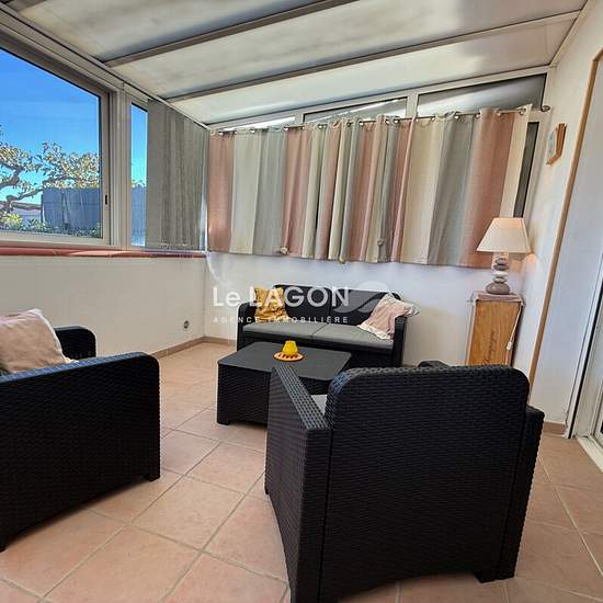 à 2 pas des commerces et des commodités, rare maison MEUBLÉE traversante hors résidence d'environ 56 m2 élevée d'un étage comprenant au rez-de-chaussée : une entrée ouverte sur un vaste salon-séjour et une cuisine américaine équipée neuve, une spacieuse véranda, une chambre exposée EST, une salle d'eau avec fenêtre, un wc indépendant, une buanderie. À l'étage : une vaste chambre avec rangement Sur l'avant de la maison, vous disposez d'une cour privative. La maison offre de belles prestations : climatisation dans chaque pièce, chauffage indiv...
