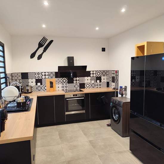EXCLUSIVITE TEISSIMMO À louer - La Rivière SAINT-LOUIS Une maison de type F4 d'une superficie d'environ 100 m² entièrement meublée. Au R.D.C: Elle comprend une cuisine équipée de 11m² donnant sur le séjour d'environ 36m², 3 chambres de 11m² d’une salle d’eau de 4,5m² avec douche à l’italienne et double vasque suivie d’un WC indépendant . À l'extérieur: Une terrasse couverte de 28m² avec salon de jardin . Un grand terrain de 1000m² sur lequel nous retrouvons des arbres fruitiers, trampoline et barbecue . Secteur calme, proche de toute commodi...