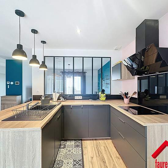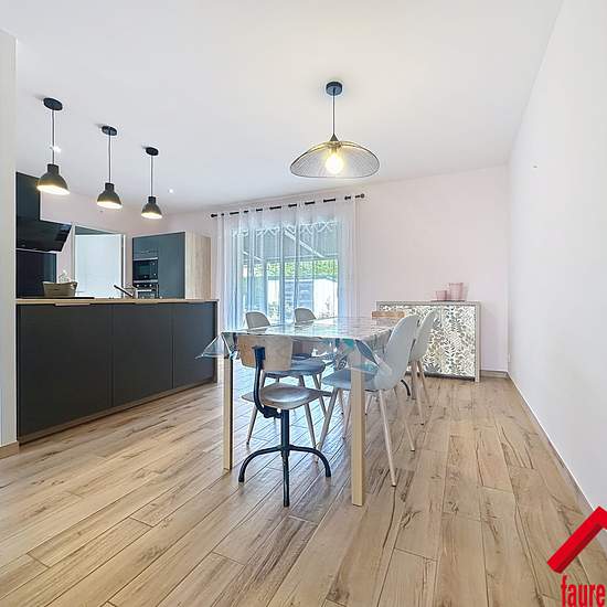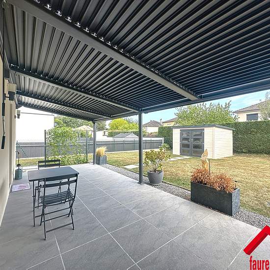 EXCLUSIVITE FAUREIMMO.FR/ Maison meublée, de plain-pied, située sur la commune de Saint-Pantaléon-de-Larche, dans un lotissement calme, comprenant une entrée, un salon/séjour, une salle à manger, une cuisine aménagée et équipée, 3 chambres avec rangements, une salle d'eau, un WC, un garage électrique de 19m2, une terrasse accompagnée d'une pergola, et un jardin entièrement clos de 500m2.