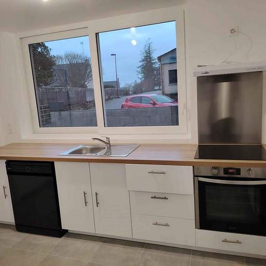 Maison à louer à Saint Sauveur Le Vicomte à partir du 01/03/2026 Maison de ville rénovée en 2024 située dans la rue principale composée de au rdc : - une belle pièce à vivre lumineuse - une cuisine aménagée - une petite salle de bain/wc avec douche et meuble vasque A l'étage : - 2 chambres - 1 petite chambre ou bureau - 1 grenier Pas de jardin mais une petite coure derrière, chauffage électrique Loyer 700€/mois hors charges