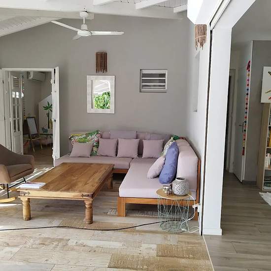 À proximité du centre-ville de Sainte-Anne, cette belle propriété vous accueille dans un jardin tropical sans vis-à-vis, alliant confort et authenticité. La maison principale comprend un salon/salle à manger avec cuisine ouverte, au rez-de-chaussée une suite parentale avec salle d’eau et dressing, une seconde suite avec salle de bain, douche et dressing à l’étage. L’ensemble s’ouvre sur une terrasse couverte, idéale pour profiter des soirées en familles et amies . Un appartement indépendant complète la maison. Il dispose d’un salon, d’une cu...