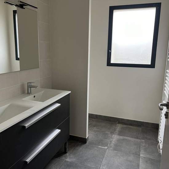 A LOUER SECTEUR MARIN COMMUNE DE SAINTE CROIX (14 KM DE VILLEFRANCHE) MAISON NEUVE D'UNE SURFACE DE 94.65 M2 DE PLAIN PIED SUR 2900 M2 DE TERRAIN NON CLOTURE CUISINE EQUIPEE OUVERTE SUR SEJOUR, TROIS CHAMBRES DONT DEUX AVEC PLACARDS, UNE SALLE D'EAU, UN WC SEPARE UNE BUANDERIE VOLETS ROULANTS ELECTRIQUES POMPE A CHALEUR Les informations sur les risques auxquels ce bien est exposé sont disponibles sur le site Géorisques : georisques. gouv. fr