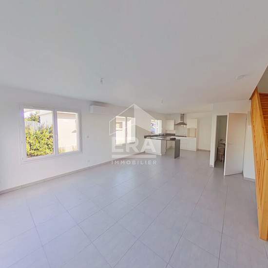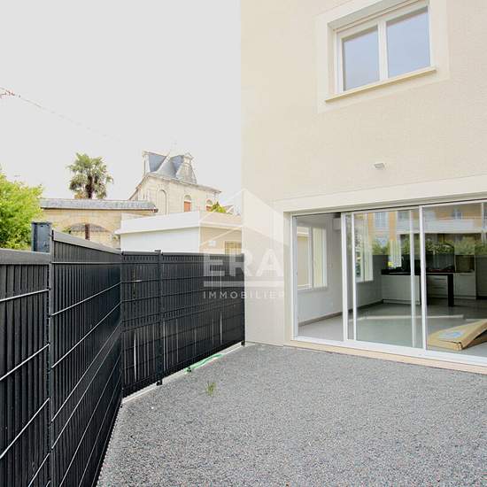 A louer maison neuve Talence Médoquine proche gare de Talence 3 chambres terrasse. A proximité de la gare de Talence, proche des commerces et transports, maison neuve comprenant au rez-de-chaussée un grand salon séjour avec cuisine aménagée, 1 terrasse, cellier,1 wc et à l''étage 3 chambres avec placards aménagés, 2 salles d'eau et 1 wc. Belles prestations: Chauffage par pompe à chaleur avec climatisation réversible, ballon thermodynamique, volets électriques, etc...