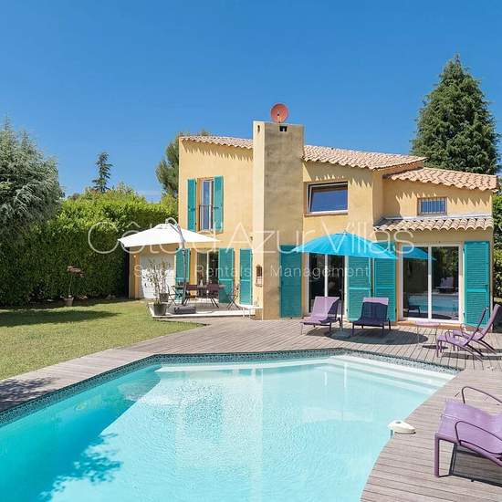 DISPONIBLE A PARTIR D'OCTOBRE 2025 Cette villa avec 3-4 chambres est située dans le domaine de Val d'Azur à Valbonne Le loyer comprend l'entretien piscine et jardin. Disponible a l'annee pour 3500 euros/mois. Internet avec la fibre. La villa, rénovée et redécorée se compose au rez-de-chaussée d'un spacieux et lumineux salon / salle à manger avec portes-fenêtres ouvrant sur la terrasse. La cuisine ouverte, entièrement équipée comprend un coin petit-déjeuner et a accès direct à la terrasse. Au même étage, vous trouverez également une chambre d...